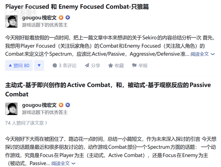 在他其他公开的知乎文章内容中,也包含了大量如《黑暗之魂》和《仁王》ARPG作品的战斗设计解读分析。 相信这些思路,也将或多或少地体现在《楼兰》里。