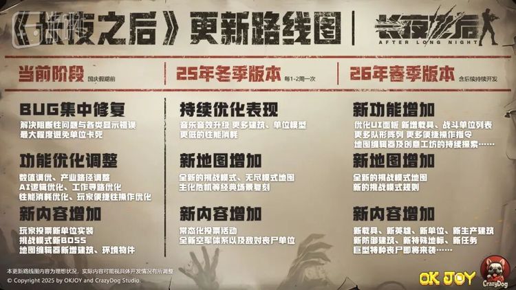 现在版本的《长夜之后》,我个人觉得是比较平衡、体验流畅的一个版本。在之前我们其实还尝试过很多版本,有的RTS 成分重一点的,另一些则是模拟成分重一点,也给一些玩家进行了测试。