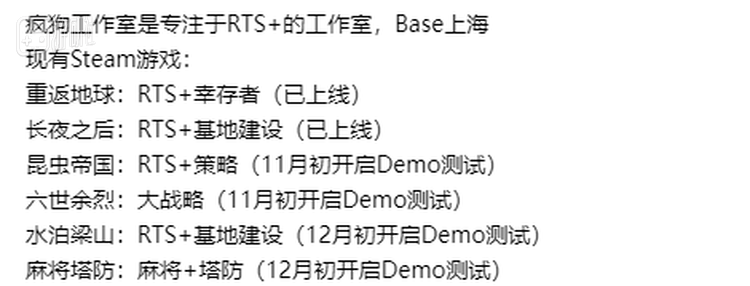 Q:《长夜之后》不是你们目前发售的第一款游戏了,但目前做的游戏都是RTS类,你们选择这条赛道有怎样的考虑?