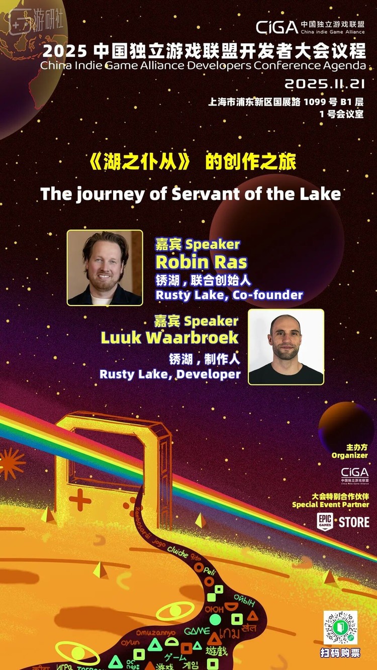 在系列最新作《湖之仆从》发售之前,2025 CiGADC很荣幸有请到《锈湖》系列的两位主创Robin Ras与Luuk Waarbroek为我们讲述《湖之仆从》的创作之旅。