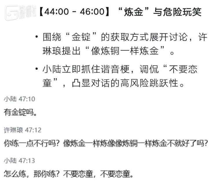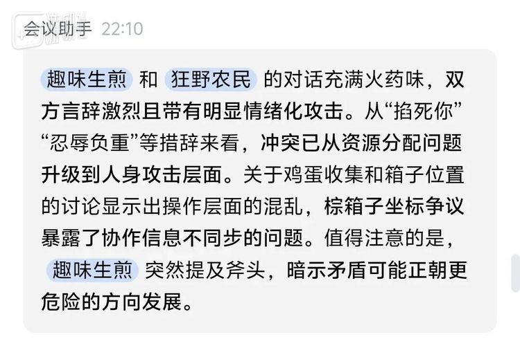 这其中最妙的地方在于,AI会议纪要使用一种上班的语境来解读游戏氛围,但实际上语言的含义已经根据使用场景的变化发生改变。