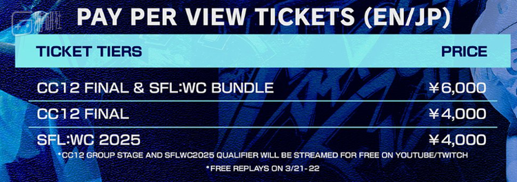 今年9月末,CAPCOM官方公开宣布旗下格斗游戏《街霸6》的第一方赛事CAPCOM CUP(即卡普空杯)和战队联赛SFL将采用付费直播的形式放出,任何想要第一时间观看线上直播的玩家,都需要购买相应门票。