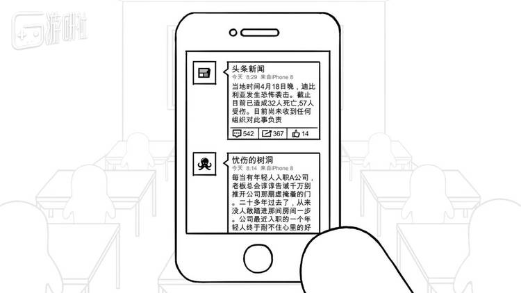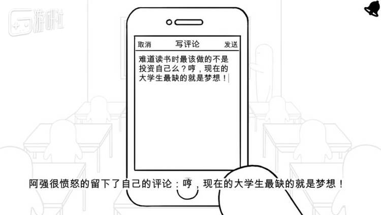 上课时,阿强作为一个现代大学生,对老师的“过时”的授课方式嗤之以鼻,转而在手机上阅读各种平台的推送。