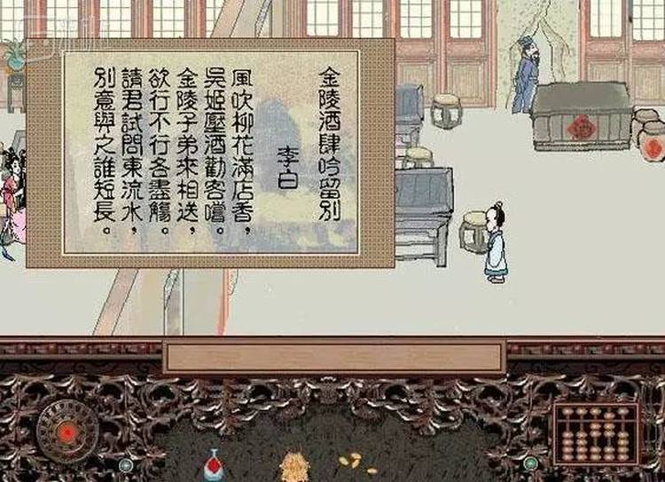 值得一提的是游戏的“诗文赏析”功能,让玩家通过作者、诗文名、创作年代,佳句,格律等关键字来检索;当你查到具体的诗歌后又可从诗画欣赏、白话注释、吟诵、评析、作者简介等七方面看详细介绍。