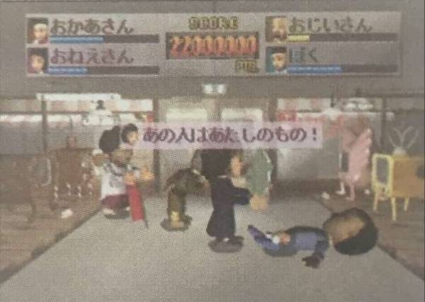 除此之外,还有为了给爷爷买生日蛋糕而与飞来的苍蝇大战,在附近的空地上玩球,扫墓等总共12个剧本之多。其中最离谱的莫过于一家人去买电视的时候,姐姐与妈妈为了抢男人而大打出手,使用灭火器与炸弹互相攻击,想要将对方杀死的疯狂戏码。