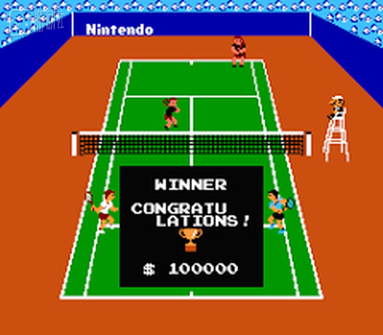 不用说,正是fc最早的那款《网球》。操作微妙地没有力度感,是那个时代常见的平庸体育游戏。