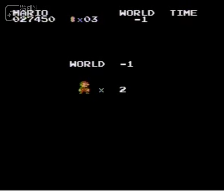 顺带一提,磁碟版的《超级马里奥兄弟》也可以进入负1关。只是与通常版不一样,完全是不同的版面。