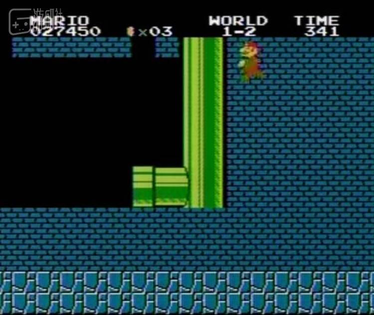 然后控制马里奥顶掉距离水管第二个砖头。