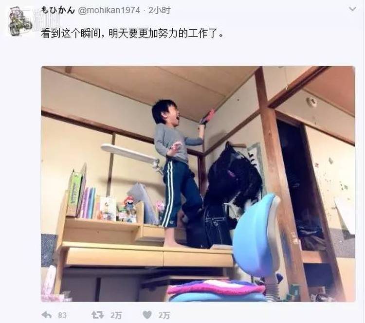 不知在这十几小时的时间里,もひかん的心情发生了怎样的转变。总之,他的儿子得偿所愿,而他也从中获得慰藉,这个小故事随之传遍全球。今天有无数来自不同国家的网友在他的推特下留言。一位国内网友评价道:“这样的爸爸真是太棒了!爸爸多和他一起玩马车8啊。”