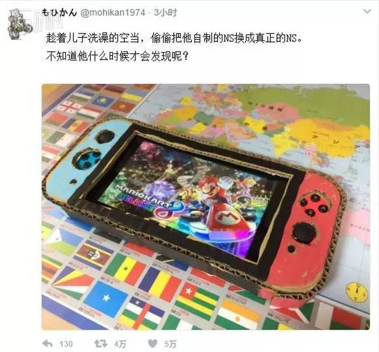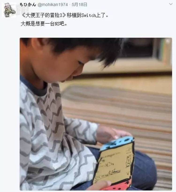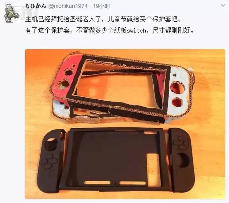 当时的他似乎还未下定决心购买Switch,面对网友“为什么纸板做的Switch和真机那么像”的询问时,他说儿童节(日本刚过了男孩节,5月5日)先买了个Switch的保护套,因此不管做多少个纸板Switch,尺寸都刚刚好。而此时,主机是拜托给圣诞老人的,按照正常的发展。得再过大半年,他的儿子才能拿到真正的Switch。