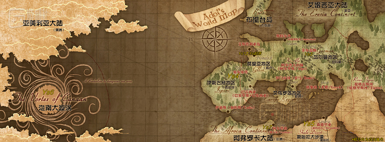 在伊苏的世界观中,世界被分为了艾雷西亚、阿弗罗卡、亚美利亚三块大陆。只说中文译名或许大家看不出什么,但如果写成英文名,那你们一定都不陌生:Eresia、Afroca、Ameria——分别是欧亚大陆、非洲大陆与美洲大陆的轻微改写。