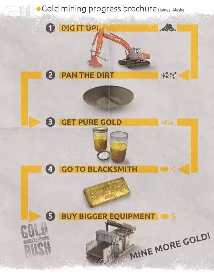 在这款名为《淘金热》(Gold Rush: The Game)的游戏中,玩家起初只有最基本的装备,必须一步步的挖掘、淘洗、提纯,然后用这笔钱买更好的装备,挖更多的黄金,以此类推不断循环,最后成为阿拉斯加最富有的人。