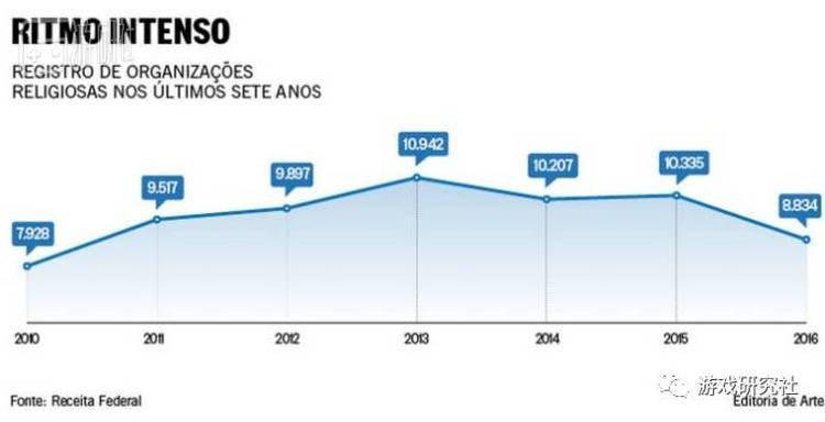 巴西的宗教团体增长曲线,每年都有接近一万个新团体诞生