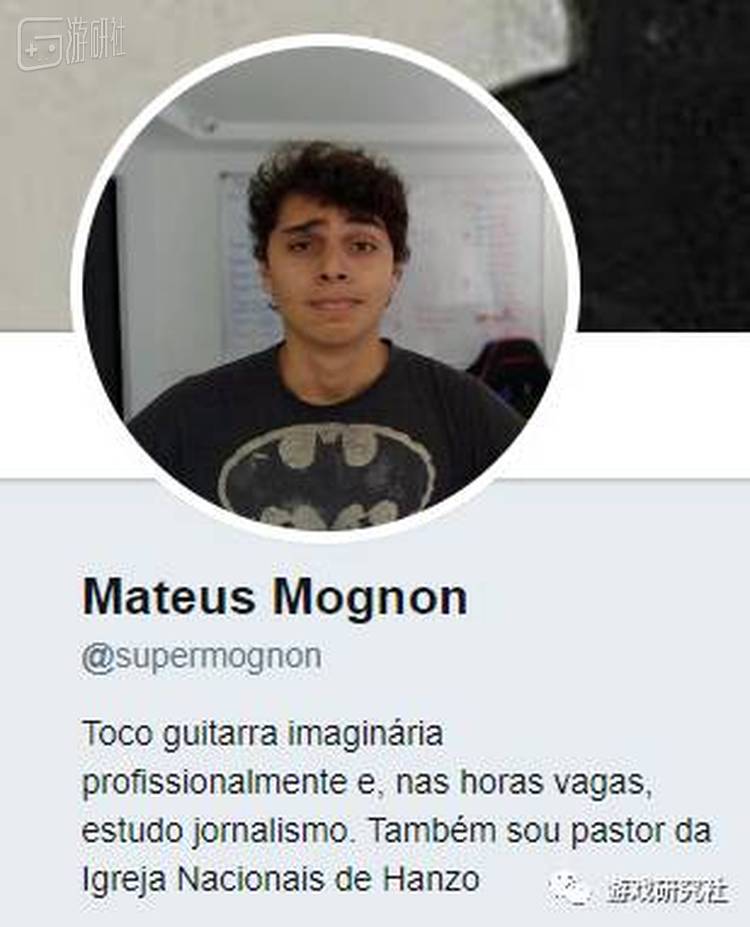 Mognon在推特上叫@supermognon,简介是:“专业是空气吉他,业余时间也学学新闻学,同时也是半藏国教会的认证牧师”。