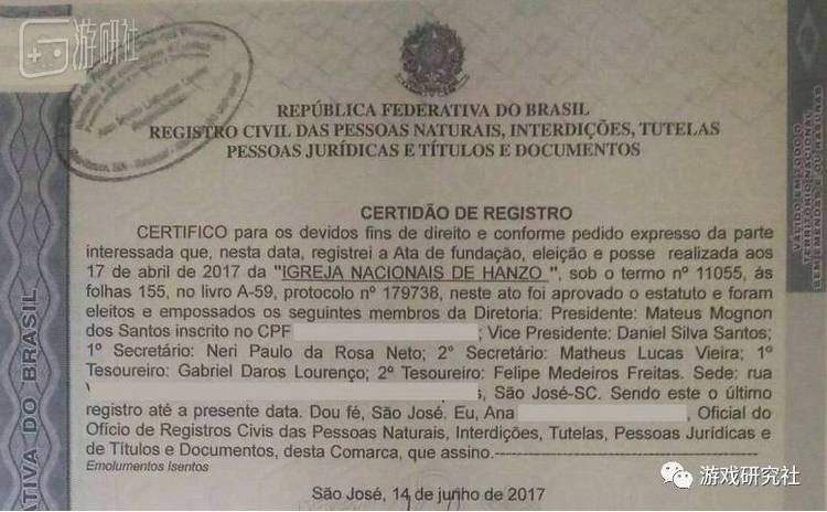 就这样,一份新宗教设计完成了。Mognon在今年四月提交了申请材料,两个月后,巴西政府的批复下来了:注册成功,总部地址在圣何塞。