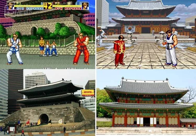 SNK的另一部格斗游戏《饿狼传说2》中,Kim的主场是崇礼门(俗称南大门)。崇礼门在2008年2月遭人为纵火焚毁,于2013年完成修复工程。而《饿狼传说RBS》的那座宫殿则是昌德宫的仁政殿。