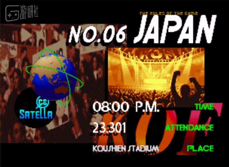 KOF97在7月下旬上市,时间上来说是香港回归之后了。画面中间的这个图也很能代表大家对香港的一般印象。