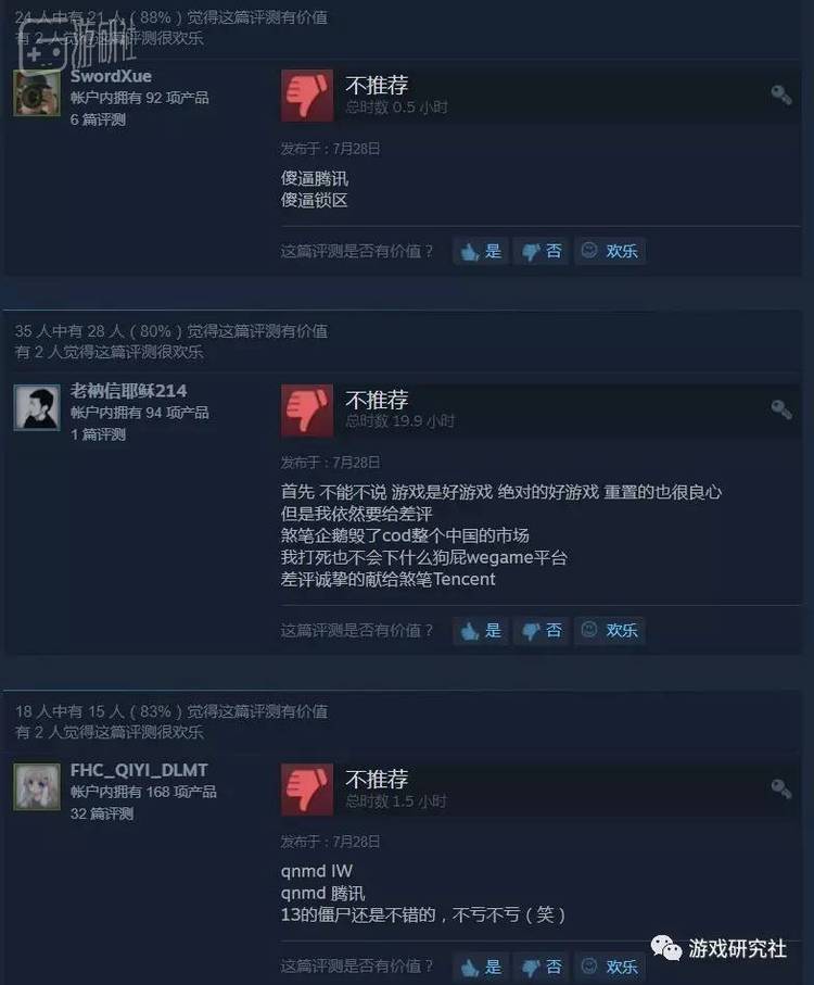 中国玩家给差评还有一个“特殊”原因,那就是锁区:腾讯代理《使命召唤Online》后,“使命召唤”全系列游戏就都锁国区了,此次也不例外。虽然动视在重制《现代战争》时特意加入了简体中文,但就因为锁区的原因,有不少玩家给了游戏差评,顺便还带上了腾讯。