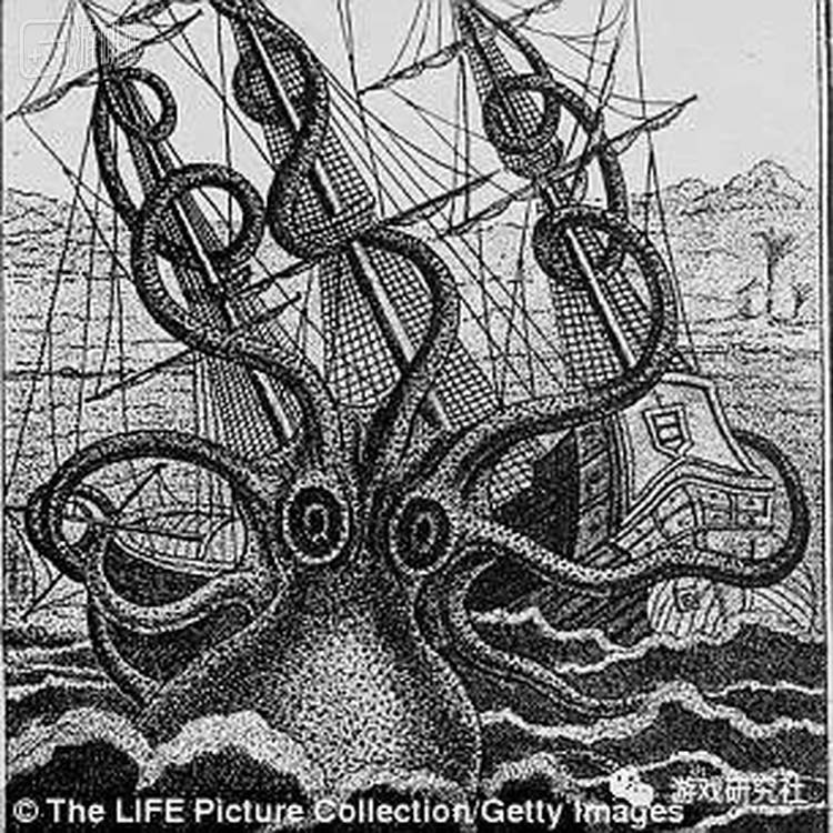 而在游戏里,克拉肯的戏份也主要跟海洋啊、航行啊这些场景有关。在一些日本RPG里,只要遇到什么主角要乘船前往新大陆的情节,就肯定会给你来一段海上的Boss战,这些Boss通常就是克拉肯或者是以头足纲为原型的动物。
