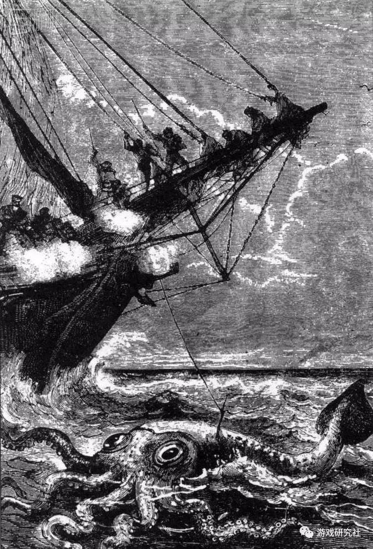在很多作品中,大王乌贼都充当了克拉肯演员的角色,比如我们熟悉的小说《海底两万里》中,就有一个根据克拉肯的传说设计的巨大鱿鱼型海怪。