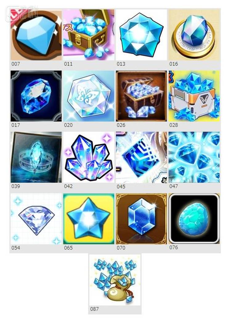 出现最多的名称可能大家看上边的图也能猜到了,就是 “钻石”。直接叫“钻石”代币宝物加起来一共有10种之多,算上名字中带“钻石”字眼的就有13种。当然更多的游戏为了配合自己的特色,或者只是想寻求些不同,而为自己的宝石起了一些相对特殊的名字。