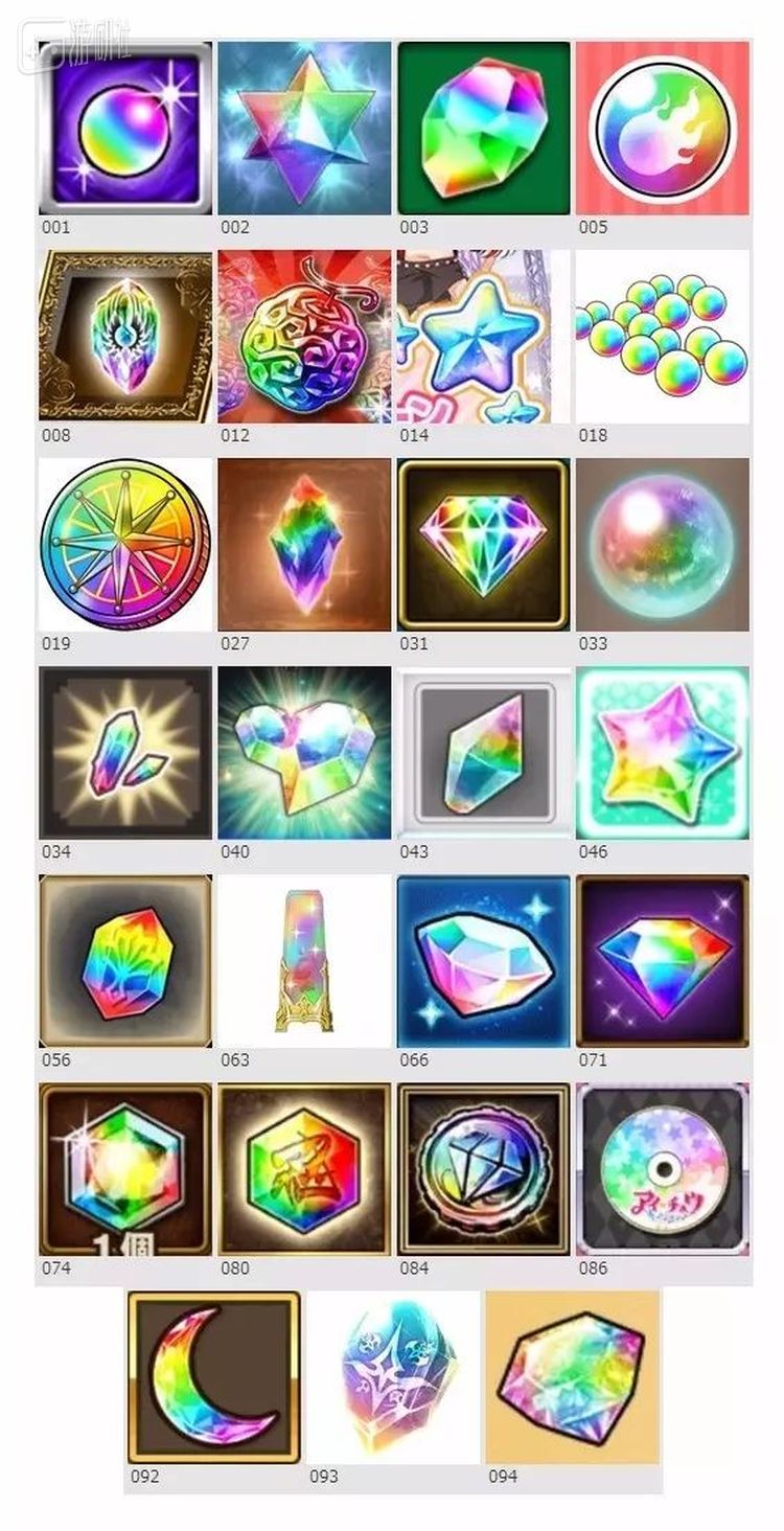 至于宝石的名字由于全是日语在这里也就不一一翻译了,不过还是可以简单的总结一下。