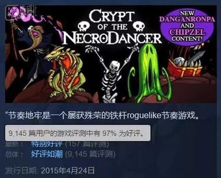 游戏在推出之后获奖无数,也受到不少玩家和游戏主播的喜爱。在Steam上,《节奏地牢》共收获9000多个评论,好评率高达97%,总体评论为“好评如潮”。