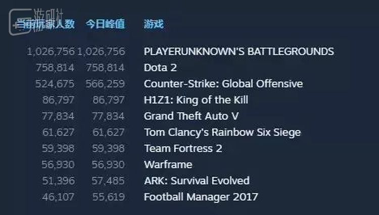 《绝地求生:大逃杀》毫无疑问是今年最火爆的一款游戏,游戏全球销量超过了1000万套,今天在Steam平台的在线也超过了100万,正在向着《Dota 2》的130万在线峰值稳步前进。而游戏制作人“PlayerUnknown”的野心不止于此,在近日接受媒体采访时,他表示对游戏用户的目标是1亿月活跃的《英雄联盟》——当然要达到这一目标还有很长的路要走。