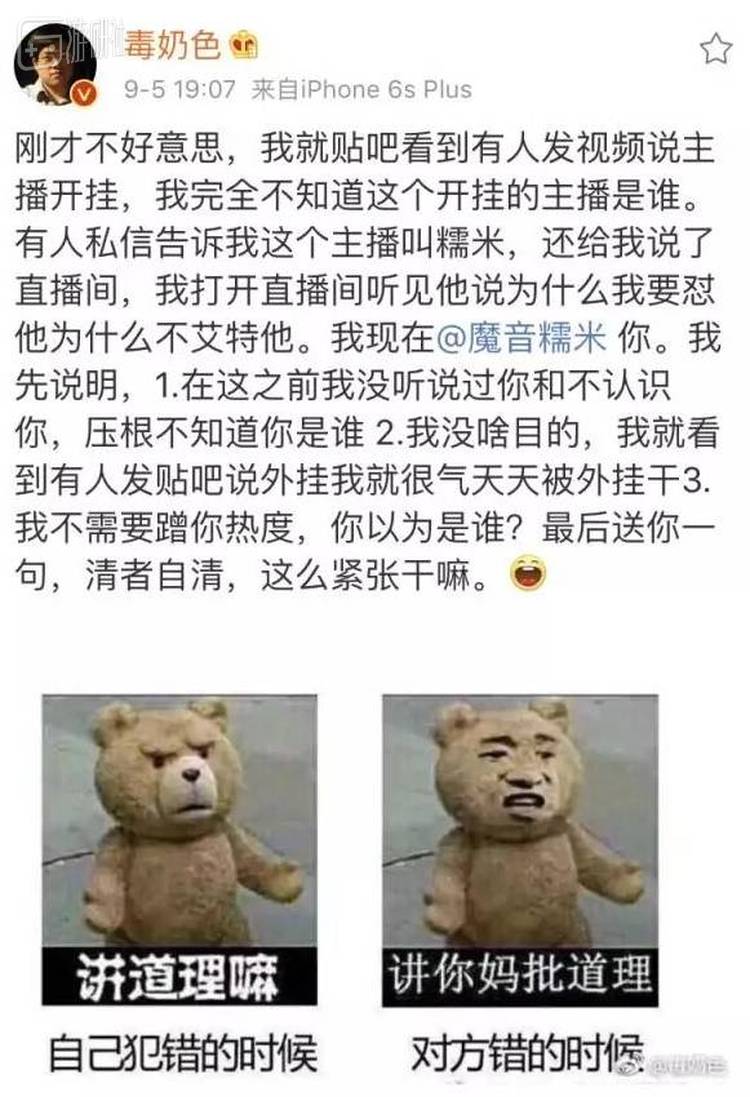 官方证据的出现在这个时候似乎令小色占据了绝对的主动权,这个时候魔音糯米也坐不住了,在凌晨三点多的时候发微博并开了直播,演示他的号没有被封,然后说会在早上十点钟来证明自己的清白。
