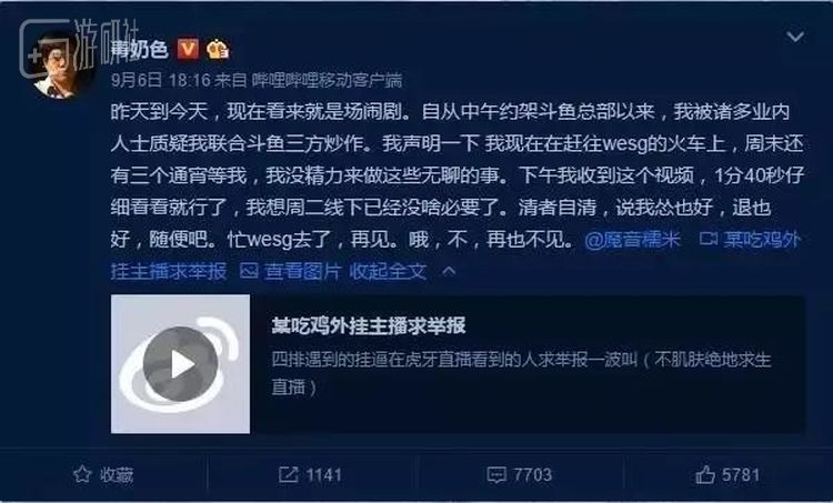 在本周二晚上,黄旭东发表微博,对主播使用外挂的行为进行了抨击: