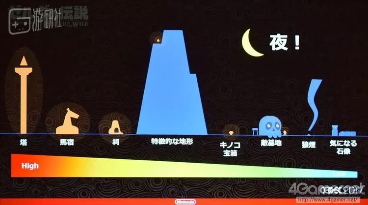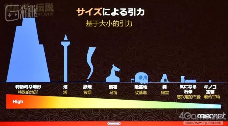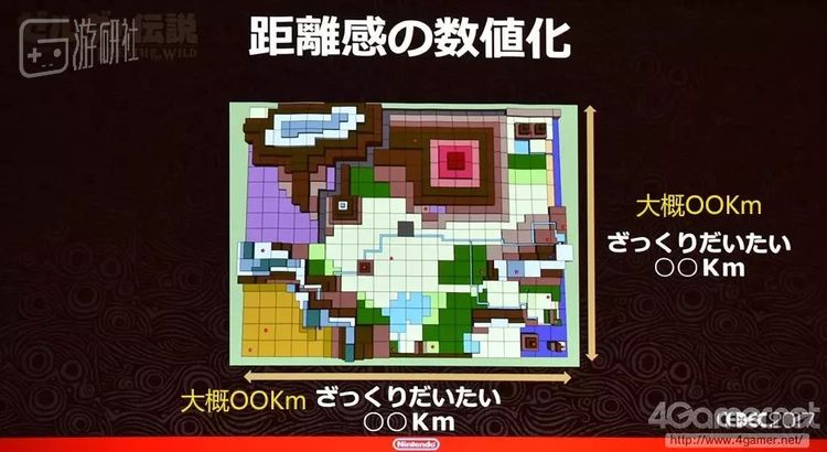 上面的内容两位开发者主要为大家讲解了一个开放世界地图该怎样做能让玩家觉得有趣。接下来依旧是由藤林来为大家讲解《荒野之息》世界的规模感是怎样设计出来的。