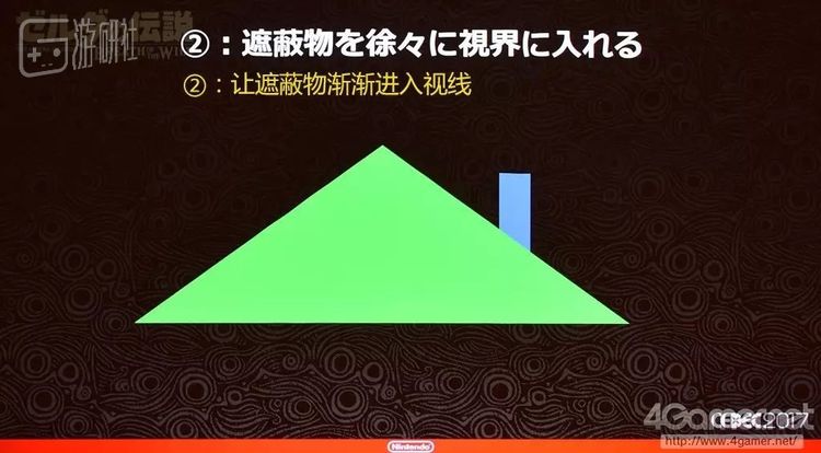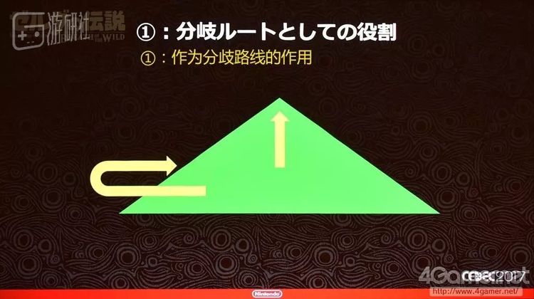 米津主要给大家介绍的是,《荒野之息》中地形设计的“场景三角法则”。