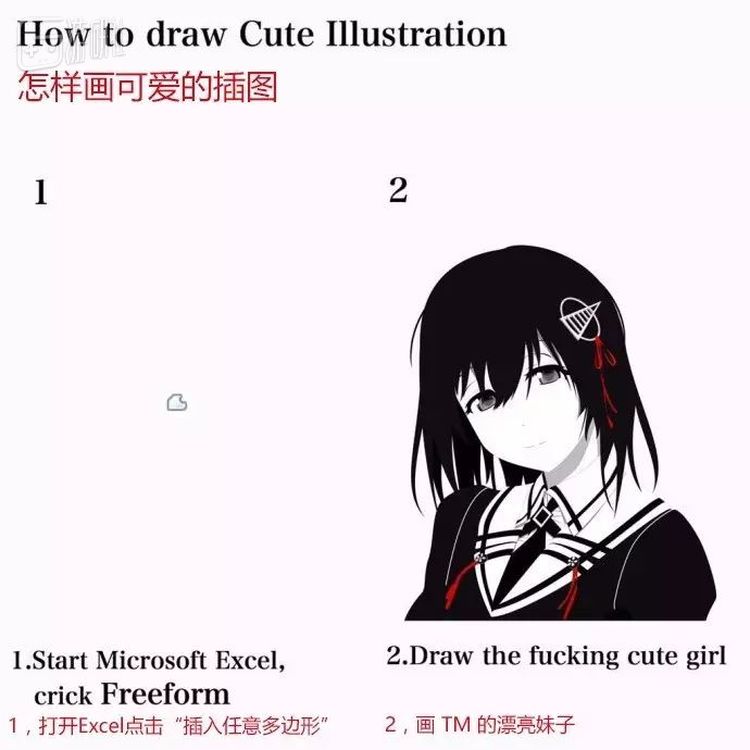 对于这项逆天的技术,想必又会有人说“教练我想学Excel画画”。为了满足大家的这个诉求,Enbos慷慨的放出了他详细的作画过程,如下: