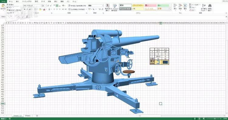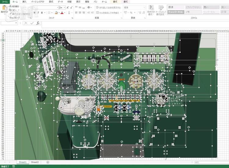 另外一个推特名叫やまとじ的朋友,还利用Excel2013的3D图形绘制的功能,画出了下面这个复杂的电车操作室。