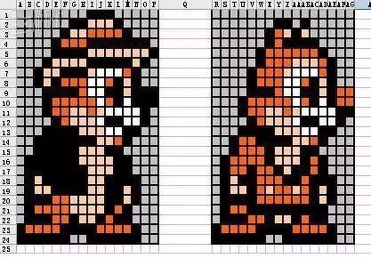 这种其实也很好理解,如果把Excel中的每个表格都当做一个像素,就可以实现像素画的绘制。下面这些,不用说也能看出画的都是谁吧。