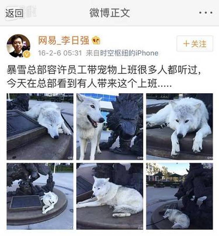 此前,网易暴雪合作部的负责人李日强就曾在微博晒过几张“霜狼”出现在暴雪总部的照片。今天暴雪的美国官网则更新了一篇长文,为玩家们展示了公司内独特的“宠物文化”。