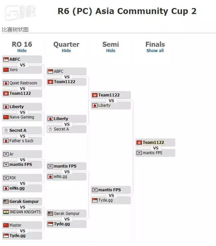 早在2015年12月,也就是《彩虹六号:围攻》发售之初,队长Choly通过自己的主播水友群找到队友组成了1122,报名参加由香港本地电竞组织CGA举办的HK League彩六联赛,并以几乎全胜的姿态赢得了冠军,以及10000港币的奖金。