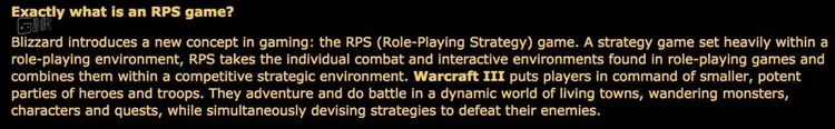 不过暴雪对RTS类型的创新执念并没有因此结束。在1999年《魔兽争霸3》公布的时候,暴雪为其赋予了一个新概念:RPS,全称为Role Play Strategy,角色扮演策略。