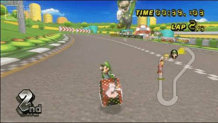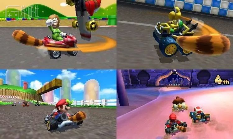 但由于画面被切割成两块,这款新作不能实现《F-ZERO》中风驰电掣的爽快感,卡丁车的创意就应运而生。再后来,把马里奥里的角色放进去、加入马里奥系列中的道具和场景元素,就是一气呵成的过程了。从第一作开始,“马车”系列的基本玩法几乎没有大的变化:多人竞速、用道具互相妨害、拐弯时的跳跃,以及不同特点的角色或车辆。