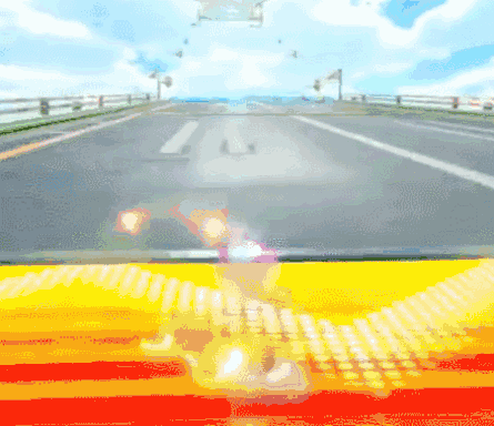 除了碰撞层面的物理之外,“马车”系列的另一个重要物理元素很显然就是车与赛道。车体在赛道限定范围内保持正常速度,在赛道外降速,几乎是所有赛车游戏的铁律,是赛车这项运动对赛车手的主要考核点之一,在初代《超级马里奥赛车》中当然也存在。在“马车”系列的前几部作品中,赛道物理也没有超过上面所描述的这个范畴。