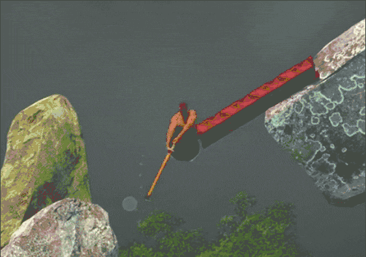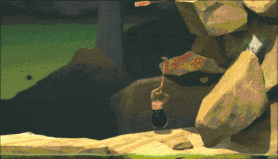 《Getting Over It》继承了《QWOP》的画面和玩法简单、遵循物理机制、超高难度及魔性十足的特点,让玩家扮演一个下半身藏在罐中的裸男,双手拿着一把大锤,合理利用周围地势,不断向上攀登: