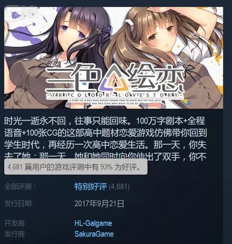 而从结果来看,《三色绘恋》虽然还是无法避免两极分化的评价,但目前的销量证实他们的策略取得了成功。