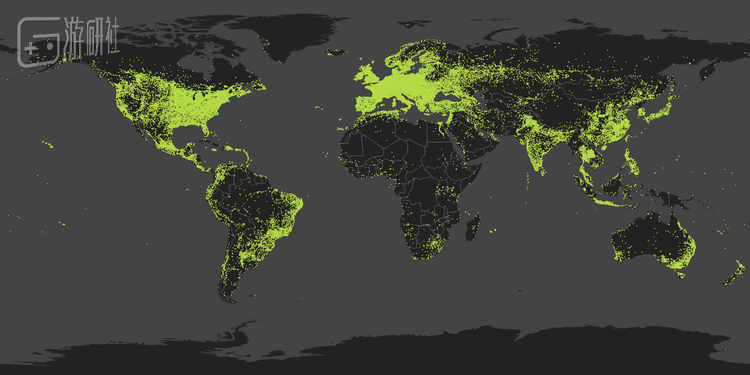 下载页面内有两个统计,其中一个是“卫星视图”。顾名思义就是把全球玩家做成一张热力图,用世界地图呈现。我们可以看到一周内Steam各地玩家的分布情况,比如欧洲、美洲和亚洲东部比较密集,这个我们都预料得到。