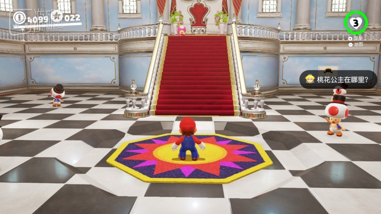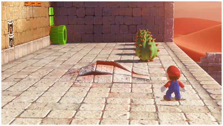 在《超级马力欧64》中,站在这个位置抬头看天花板就能进入一个隐藏关,而在《奥德赛》里则可以直接获得一颗力量之月