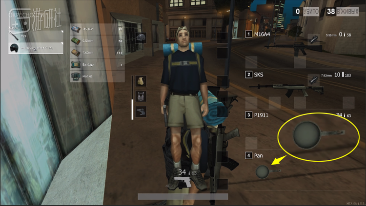 从装备界面来看,两者更是如出一辙,头盔,防弹衣,背包也有分等级设定,就连《绝地求生》里的标志性武器平底锅都有。当然这些物品在原版的圣安地列斯里是没有的,这肯定得归功于Mod作者对细节的把握。