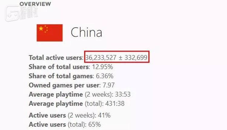 《绝地求生》的流行也让中国的活跃Steam用户数量成为全球第一:根据SteamSpy的数据,在过去两周内,中国的活跃Steam用户数量占Steam总活跃用户的19.48%,而美国为14.17%。