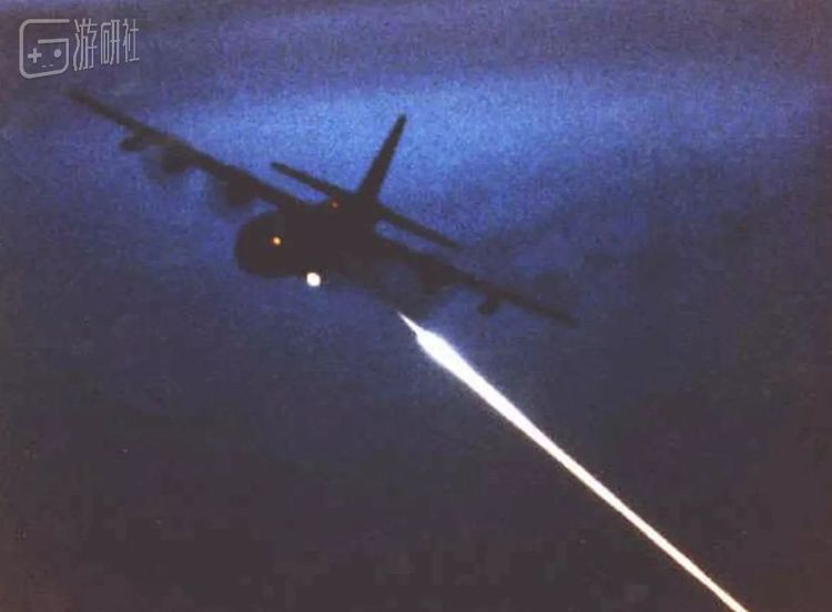 在实战中,AC-130必须在本方拥有绝对制空权的情况下,才会在夜间展开任务,并且在距离目标点15公里以外的4000米高度就展开第一轮攻击,这已经大大超过了肩扛式防空导弹的有效射程。
