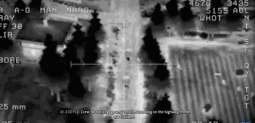 而AC-130则是以目标为圆心,在其上空进行逆时针环绕飞行。在这个过程中,火控手可以像玩FPS游戏一样,操作安装在机身左侧的武器对目标实施持续的输出——简直就是想虐多久虐多久。这种学名叫做“铁塔盘旋”的攻击姿势,就算是变形金刚也受不了……