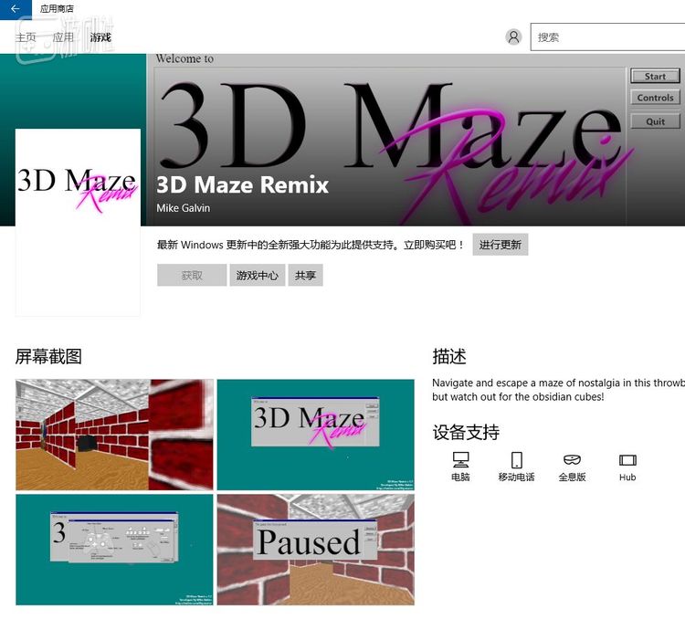 不过也不用沮丧,因为有个哥们已经把三维迷宫做成了一个正式的游戏:《3D MAZE REMIX》。它不但支持Windows、OS X、Linux三个平台,还已经登录微软的应用商店。