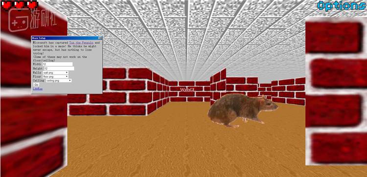 有人就照着这个三维迷宫的样子,复刻了一个小游戏放在网页上。你可以像原版屏保中呈现移动方式一样,以格为单位自由地在迷宫中移动。那些不时穿过的纸片老鼠也真的成了你穿越迷宫的最大威胁,为此,游戏中还增加了两个血量单位,被老鼠碰到三次后游戏结束。